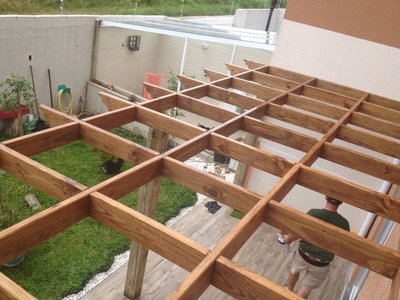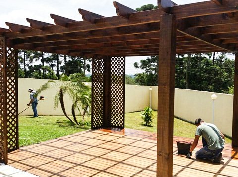 As pérgolas confeccionadas com o seguinte madeiramento: Pinus Autoclavado, Itaúba, Garapeira.